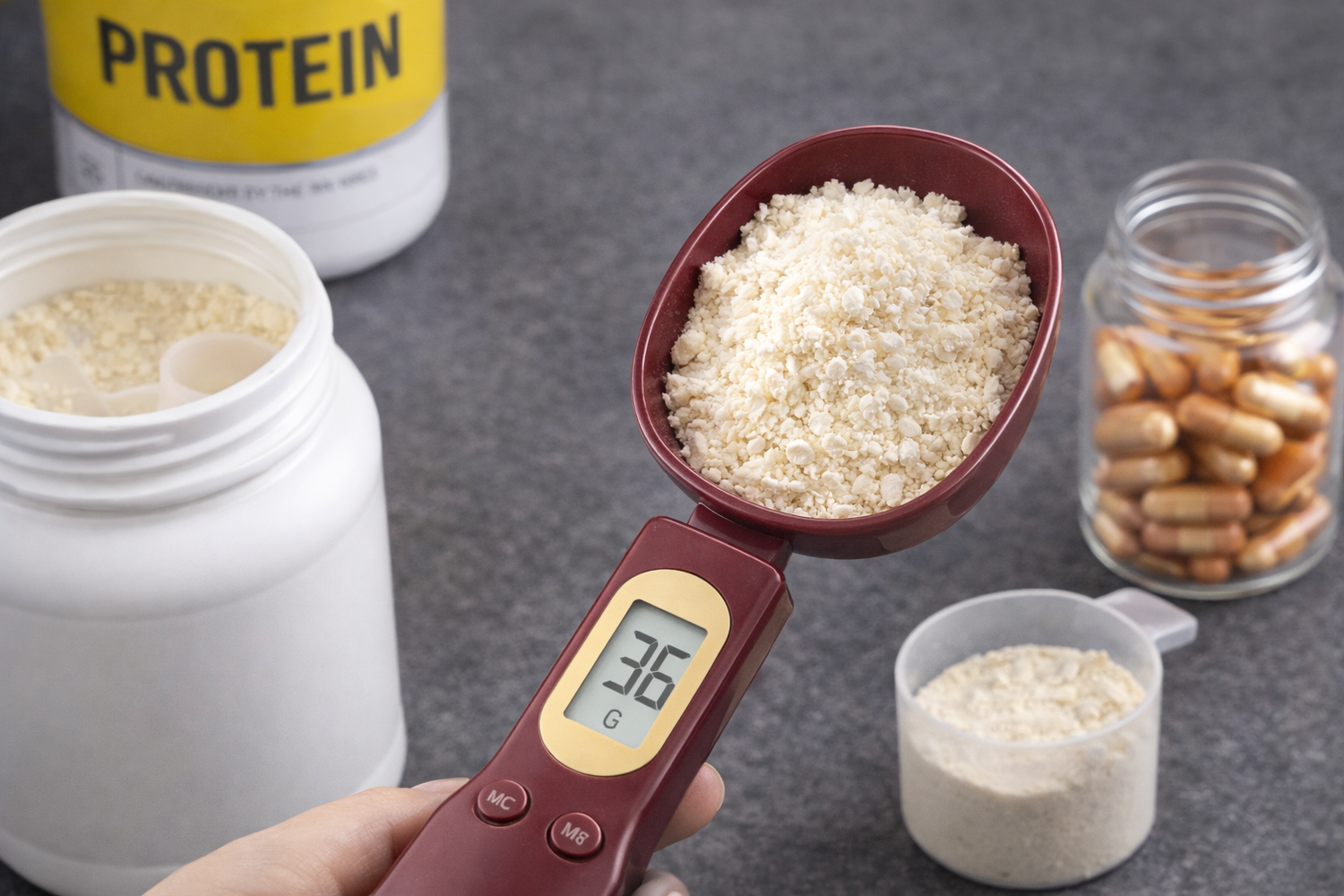 Zbyt duża ilość białka w proszku, zbyt dużo węglowodanów lub niedokładne porcje mogą spowolnić Twoje postępy, nawet j Odmierzanie porcji „na oko” może wyd Cyfrowa łyżka pomiaro Idealna do odmi...